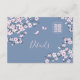 Hübsche rosafarbene Kirschblüten und ein doppeltes Glückssymbol auf einem staubblauen Hintergrund.