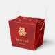 Dieses chinesische Gastgeschenk Hochzeit-Kästchen weist ein künstlerisches Doppelglückssymbol auf einem glänzenden roten Hintergrund auf. Schöne rot-weiß-goldene Box mit Braut- und Bräutigam-Namen und vielen Dank an Worte in einem eleganten handgeschriebenen Skript.