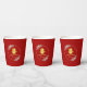Chinesische Blume des doppelten Glücks in Rot und Pappbecher