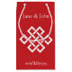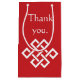 Geschenke für Ihre Begleiter, Trauzeugen, Familie und alle anderen, die etwas Besonderes verdienen in diesen Geschenktaschen, perfekt für jede Hochzeit oder Veranstaltung. Die Vorderseite dieser kirschroten Tasche ist mit einem weißen chinesischen viel Glück-Knoten und einem einfachen "Danke." geschmückt. Die Rückseite hat einen passenden viel Glück-Knoten und Beispieltext, den Sie an die Details Ihres speziellen Tages anpassen können. Vergewissern Sie sich, dass Sie die anderen Produkte im Chinesischen Stil in Cherry Set ausprobieren, um einen wirklich koordinierten Look für Ihre Veranstaltung zu schaffen.
