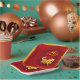Einfaches goldenes Pferdepapier mit chinesischer Laterne und goldenem Fu-Ideogramm (was Luck bedeutet), Blüten und Chinesisch in kleinen Kreisen unter den Pferden + "Jahr des Pferdes" + Golden 2026 (Original-Handschrift) auf einem golden texturierten Papier (Bild gedruckt). Design auf Party-Papierquadrat Platte. Passende Grußkarte, Urlaubspostkarte, Papierserviette (und bald mehr)... Perfekt für das chinesische Neujahr des Pferdes 2026.