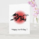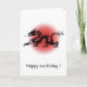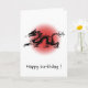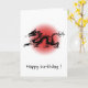 Dies ist eine Geburtstagskarte mit einer Abbildung eines traditionellen chinesischen Drachen in schwarz auf einem roten Hintergrund.