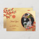 Diese elegante Chinesische Hochzeitskarte mit wunderschönen roten Kirschblüten, einem doppelten Glückssymbol und Ihrem Foto in einem ovalen, goldenen Hintergrund.