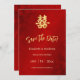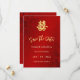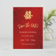 Ein künstlerisches Gold doppeltes Glückssymbol auf einem glitzernden roten Blumenhintergrund. Save the Date Text in einer eleganten, handgeschriebenen Schrift. Es stehen passende chinesische Hochzeitsprodukte zur Verfügung.