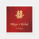 Diese chinesische Hochzeitsnapkins hat ein künstlerisches Gold-Doppelglückssymbol auf einem roten Hintergrund. Braut- und Bräutigamen in einem modernen, eleganten, handgeschriebenen Skript. .