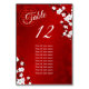Diese Chinesische Hochzeitskarte mit hübschen Weißkirschblüten und einem goldenen Doppelglückssymbol auf einem glänzenden rubinroten Hintergrund zeigt die Tischnummer. Mit Textfeldern, um eine Liste von Gastnamen hinzuzufügen.