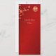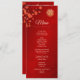 Rote Kirschblüten und ein goldenes doppeltes Glückssymbol auf einem schimmernden roten Hintergrund. Mit eigenen Braut- und Bräutigamen, dem Hochzeitstermin und einem eigenen Menütext. Auf der Rückseite sind die Initialen zu ändern.