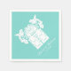 Aquamarines Blaues und Weiß Chinesisches Liebesgeburten Doppelglückssymbol. Personalisierte Servietten für Hochzeitsempfang. Fügen Sie Ihren eigenen Text / Datum hinzu.