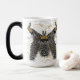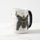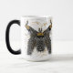 Chinesische Pfauen Design Gold Magic Tasse Vintager Orientalischer Pfauenvogel im Multidesign mit goldenem Wellenmuster-Hintergrund