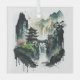Chinesische Tintenlandschaft mit Wasserfall Ornament Aus Glas