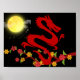 Chinesischer Drache. Sehr eindrucksvolles Poster mit Mondschein und Blume. Die Lage ist sehr gut.