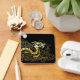 Power, Kraft, Glück. Minimalistische Linienkunst eines Drachen in Gold - ideal für jeden, der nach einem einfachen, mutigen Design sucht, um Kraft und Glück in sein Leben zu bringen.