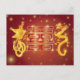 Chinesischer Drache und Phönix Mythische Tiere Symbol der Gewerkschaft und Ehe mit Kalligrafie Text des doppelten Glücks auf einer Funkelnd, roten Hintergrund Festivelle Illustration Zeichnend Postkarte
