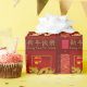 Chinesisch traditionelles Drachenpapier geschnitten mit Muster und roten Laternen + Wünsche in Chinesisch und Englisch. Design auf der Packpapierrolle.