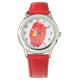 Kinderuhr aus Edelstahl mit rotem Lederarmband
