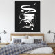 Diese Leinwand zeigt eine abstrakte, ausdrucksstarke, unregelmäßige und scharfe weiße Linie in einem vertikalen Format mit einem chinesischen Grafikeffekt, über dem flachen schwarzen Hintergrund.