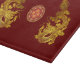 Doppelter chinesischer goldener Drachenschnitt mit chinesischem Dekormuster in der Mitte auf dunkelrotem Hintergrund. Entwurf auf dem Schneidebrett. Sie können die Hintergrundfarbe leicht ändern, indem Sie auf die Schaltfläche Anpassen klicken. Ideal für Chinesisches Neujahr des Drachen oder Geburtstag (Menschen geboren im Drachenjahr).