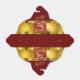 Roter Drache inspiriert durch traditionelles chinesisches Papier geschnitten in einen Kreis mit rotem Hintergrund + goldener Hintergrund. Design auf dem Take-out-Feld. Passende Grußkarte, Urlaubspostkarte und Aufkleber. Perfekt für das chinesische Holzdrachenjahr 2024.