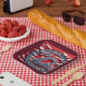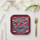 Chinesischer Drache inspiriert durch traditionelle Papierschnitt mit weißen Wolken vor einem dekorierten Hintergrund. Das glückliche neue Jahr ist in White Chinese Ideogrammen + 2024. Design auf der Papierplatte aus quadratischem Party. Passende Grußkarte, Urlaubspostkarte, Aufkleber und mehr.