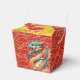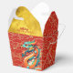 Niedliche Drachen (Abbildung) in ein verziertes rotes und "goldenes" Muster. Design on take-out Gevor Box mit Gruß in Chinesisch und Nachricht zu personalisieren.