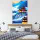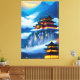 Chinesische Palast Gebäude sitzen in den Bergen unter dem Mondschein.