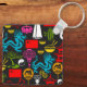 Eine ganze Reihe verschiedener chinesischer Symbole auf schwarzem Hintergrund. Dieses Design wirkt auf diesem Schlüsselanhänger wirklich effektiv