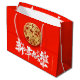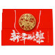 Große Wünsche "Happy New Year" in Chinesisch (weiß moderne Kalligrafie) und in Englisch, Tiger rund golden Papier-Schnitt (Bild gedruckt - Modell n°1). Design auf große Geschenktasche mit rotem Hintergrund. Sie können die Hintergrundfarbe leicht ändern, indem Sie auf die Schaltfläche Anpassen klicken. Erhältlich mit anderen Tigerpapier-Schnitten. Perfekt für das chinesische Neujahr des Tigers.