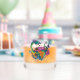 Ein chinesischer, grüner und lila Wasserdrache mit orangefarbenem Koi-Fisch, Lotus-Blume und Kirschblüten im Wasser vor blauem Hintergrund