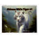 Erleben Sie die Schönheit und Majestät des mythologischen chinesischen Weißen Tiger mit unserem atemberaubenden Kalender. Jeden Monat erscheint ein atemberaubendes Bild dieser großartigen Kreatur, die eines der vier Symbole der chinesischen Konstellationen ist. Es repräsentiert den Westen und die Herbstsaison. Der weiße Tiger ist ein Symbol für Stärke und Mut, mit seinem auffallenden Aussehen und seiner starken Präsenz. Bestellen Sie jetzt und bringen Sie den Geist des Weißen Tiger das ganze Jahr über in Ihre Zuhause.