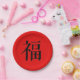 Chinesisches Thema mit chinesischem Schriftzeichen des Glückes gegen einen roten Hintergrund