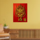 Illustration des chinesischen Drachen über den abscheulichen roten Hintergrund mit chinesischem Kalligraphie-Poster