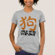 Silhouetten einiger Hunde mit kundengerechtem orange Ideogramm auf Frauengrau-Shirt. Jahr des Hundes (Titel) und Jahr sind nicht kundengerecht. Vervollkommnen Sie für Chinesisches Neujahrsfest des Hundes 2018. ----- "Der Hund (狗) ist einer des 12-jährigen Zyklus der Tiere, die im chinesischen Tierkreis erscheinen, der auf dem chinesischen Kalender bezogen wird. Das Jahr des Hundes ist mit dem irdischen Niederlassungssymbol 戌 verbunden. Das Charakter 狗 bezieht sich das auf tatsächliche Tier, während 戌 auf das Tierkreistier sich bezieht. (...) Können die Leute, die innerhalb dieser Datumsbereiche geboren sind, gesagt werden, im "Jahr des Hundes" geboren gewesen zu sein, beim das folgende elementare Zeichen auch tragen: