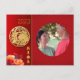 Design der chinesischen Peonies + goldenes Rabbit Papier-Schnitt (Bild gedruckt) + Happy New Year in Chinesisch + anpassbar 2023 und kleine "glückliche Neujahr" auf einen roten Hintergrund + dekorierte Foto Rahmen für Ihr eigenes Foto vor. Sie können das Foto leicht ändern, indem Sie auf die Schaltfläche Anpassen klicken. Design auf der horizontalen Ferienpostkarte. Matching quadratische Flachkarte und Grußkarte. Ideal für ein chinesisches Neujahr des Kaninchens 2023.
