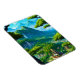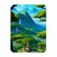 Chinesische Paläste und Tempel inmitten eines Tales, umgeben von Bergen und Natur.