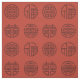 Chinesische Symbole für Reichtum, Langlebigkeit, doppeltes Glück und Glück verzieren dieses rote Gewebe in einem einfachen Muster, projektiert die Schaffung eines großen Entwurfs für Handwerk für Chinesisches Neujahrsfest oder jede mögliche Gelegenheit.