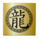 Feiern Sie das Jahr des Drachen mit diesem auffälligen Design mit dem chinesischen Symbol (oder japanischem Kanji) für Drache, umgeben von einem verzierten, orientalischen Rundrahmen auf goldenem Hintergrund.