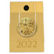 Elegantes Design mit goldenem Rundpapier aus einem Tiger. Design auf mittlere Geschenktasche mit Groß 2022, Jahr der Tiger und Monogramm auf schwarz rund + gleiche Hintergrund Bild in der Rückseite. Sie können Text (Schriftart, Farbe, Größe und Position) ganz einfach ändern, indem Sie auf die Schaltfläche Anpassen klicken.