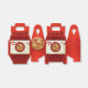 Modernes und traditionelles Design mit goldenem chinesischem Tiger-Papier (Bild gedruckt) auf dunkelrot runder Form auf kalligrafischem Hintergrund (Fu Ideogramm bedeutet Glück oder Glück) in Grautönen + rosa Blüten von Pfirsichbäumen. Design auf Gable Gvor Box . Matching Grußkarte, Ferien Postkarte und quadratische Einladung mit Texten, um für Chinesisch Neujahr Celebrationn. Perfekt für das chinesische Neujahr des Tiger 2022.