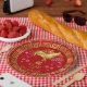 Chinesisches Zodiac-Rooster Rot/Gold-ID542 Pappteller
