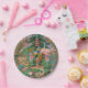 Ein farbenprächtiges und faszinierendes antikes Tapetendesign schafft dieses wunderschöne chinoiserie-Muster - ein wunderschöner Garten mit blühenden Bäumen, Gebäude und Figuren.