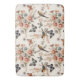 Vögel und Schmetterlinge verstreut sich in einem Muster blühender rosa Blume auf Elfenbeinhintergrund, wodurch ein harmonisches und skurriles Naturnahtloses Muster entsteht. Bildmuster können größer oder kleiner werden, um einen anderen Effekt zu erzeugen.