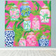 Acrylmalerei von farbenfrohen Chinoiserie-Gläsern und Bananenfischen auf lebhaftem rosa Hintergrund