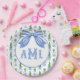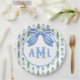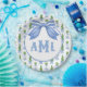 Dieses Topiary Plattendesign zeichnet sich durch einen sehr chic blauen und grünen Gitter gemusterten Hintergrund mit einem koordinierenden blau-weiß gestreiften Bogen aus. Sie können mit Ihren Monogramm-Initialen personalisieren.