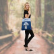 This cute cottagecore style tote bag features large mushroom decorated in in blue floral Chinoiserie pattern on a dark Navy background. The top is trimmed in light blue, with your recipient's monogram name in a script font in Navy. Make sure to type the name you want in the Personalize section. The design is the same on both sides.
