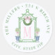 Dieser Aufkleber hat ein prächtiges, altmodisches Design mit einer grünen Pagode und einem Weihnachtskranz mit einem rosa Gingham-Bogen. Auf beiden Seiten befinden sich die Topiaries der Chinoiserie. Sie können Ihre persönlichen Daten mit Ihrem Namen und Ihrer Adresse versehen.