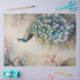 Abbild 2 von 4 großen VERTICAL Chinoiserie Floral Pfau und koordiniert Hintergrund für Decodipage, 2 horizontale & 2 vertikale. Mit einem eleganten, chinesisch-stilisierten Kirschblütenhintergrund und detailgetreuem Pfau in einem miessigen, ätherischen Garten. Es gibt eine schwache Crackle-Textur, die einen gealterten Pinselstrich und texturale Pinselstriche hinzufügt. Grafisch entworfen von Audrey Jeanne Roberts, international lizenzierter Künstlerin, Copyright. MSP0149