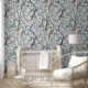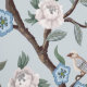 Chinoiserie Peony Blume, Bäume & Vögel Light Grau Tapete