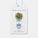 Chinoiserie Töpferei Orange Topiary Tree Blue Gift Tags. Fröhlicher Weihnachtstext kann geändert werden. Blaue und weiße Keramik. Der kleine blaue Bogen kann entfernt werden. Klassisch und zeitlos.