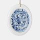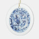 Chinoiserie blau-weiße Platte Keramik Ornament mit Bild auf der Vorder-und Rückseite. Aquarellgestaltung der Künstlerin Anne Harwell McElhaney alias Annechovie.