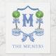 Chinoiserie Wasserfarben Wappen Topiary Monogram Weinetikett